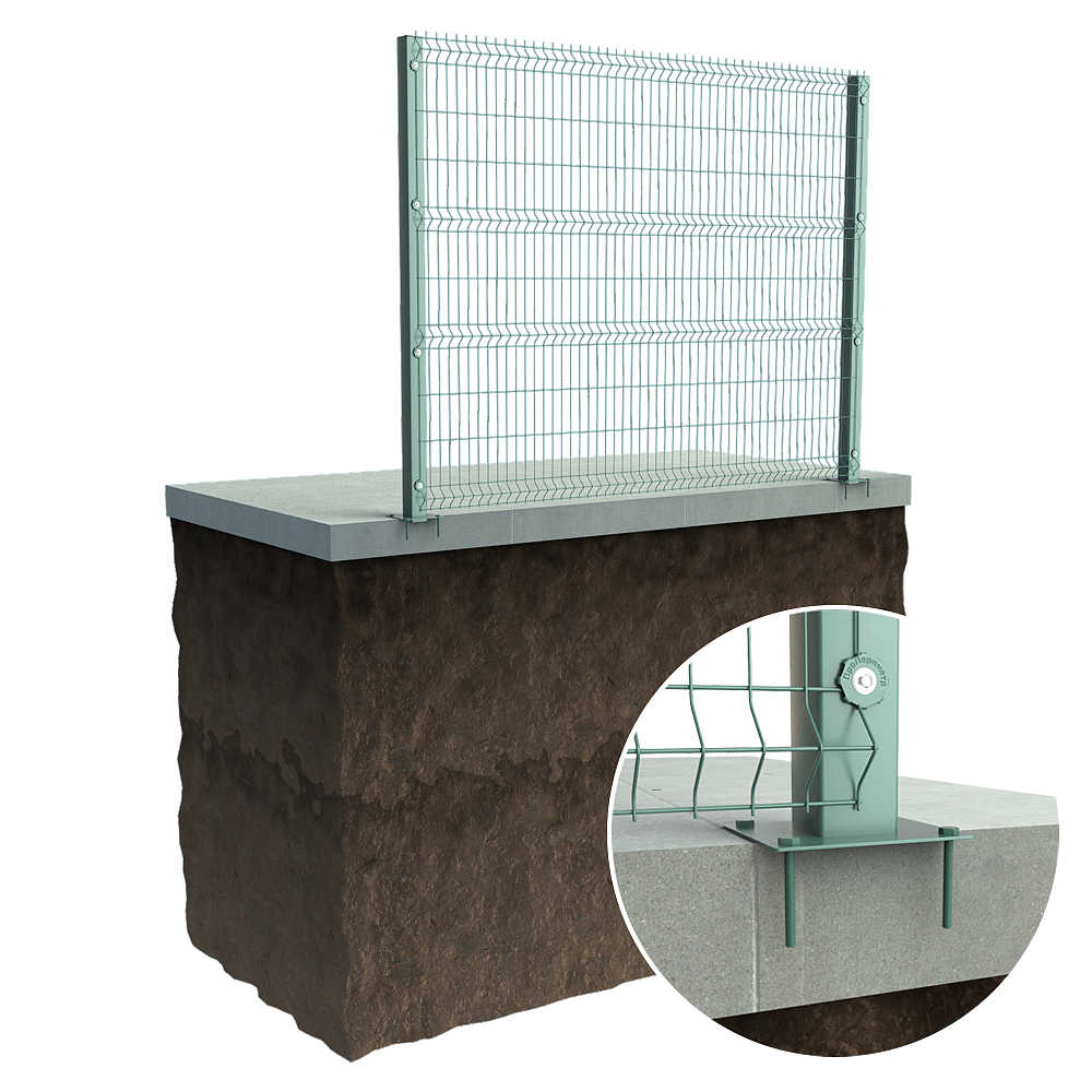 Данный вид установки обеспечивает большую прочность ограждения при воздействии вандальных нагрузок за счет большего сечения в плоскости сопротивления нагрузкам, по сравнению с вариантом установки 60 с лицевой стороны.